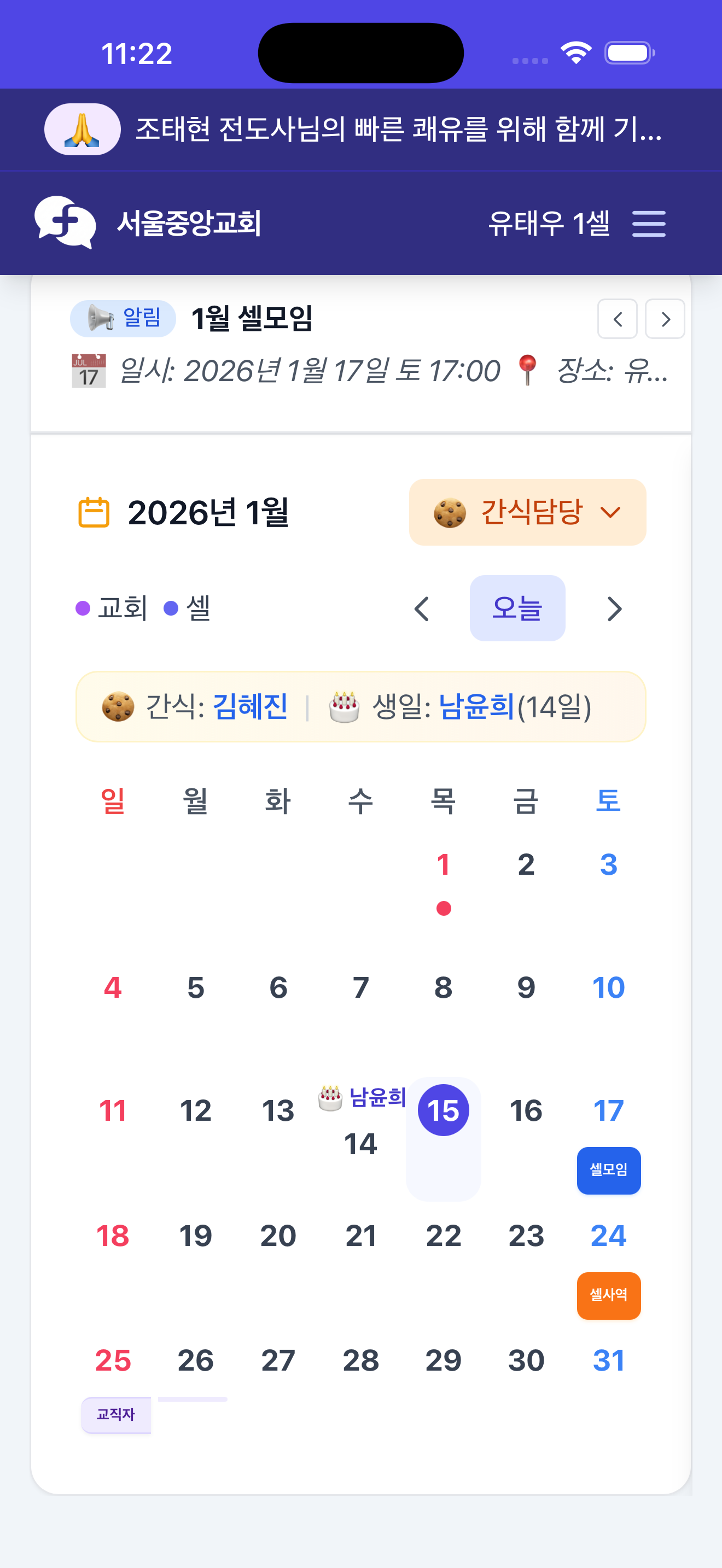 심방 기록: 셀원들의 기도 제목과 특이사항을 체계적으로 기록
